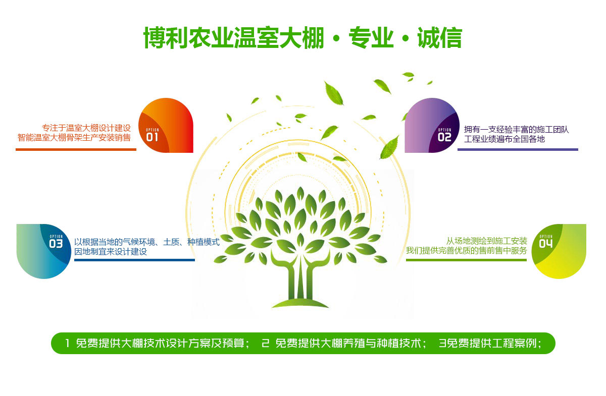 安陽博利農業(yè)科技有限公司,是一家專業(yè)生產溫室大棚的現代化企業(yè)。公司擁有大棚材料生產線,各種加工折彎,縮頭等設備,及專業(yè)研發(fā)、技術人員,提供設計、制作、安裝及售后全程服務。公司在鍍塑鋼管大棚,幾字鋼、C型鋼溫室大棚,薄膜連體大棚,玻璃智能連棟大棚,反季節(jié)蔬菜溫室大棚,花卉大棚…